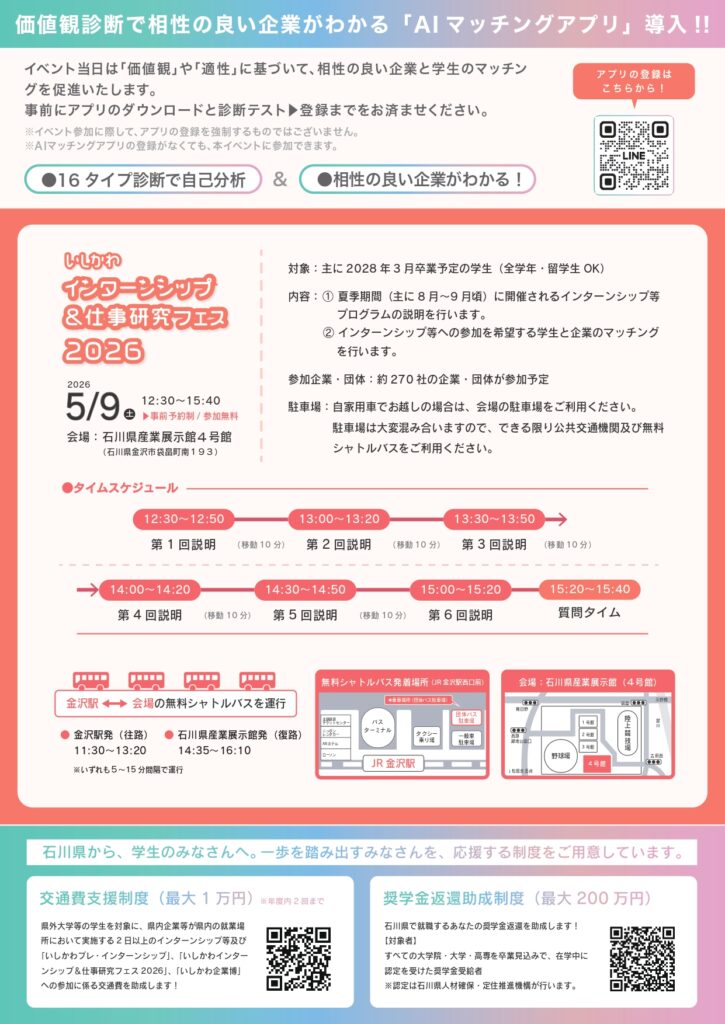 【5/9 石川】いしかわインターンシップ&仕事研究フェス