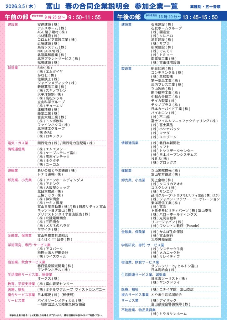 ・富山市・滑川市・舟橋村・上市町・立山町の企業への就職を希望する一般求職者
